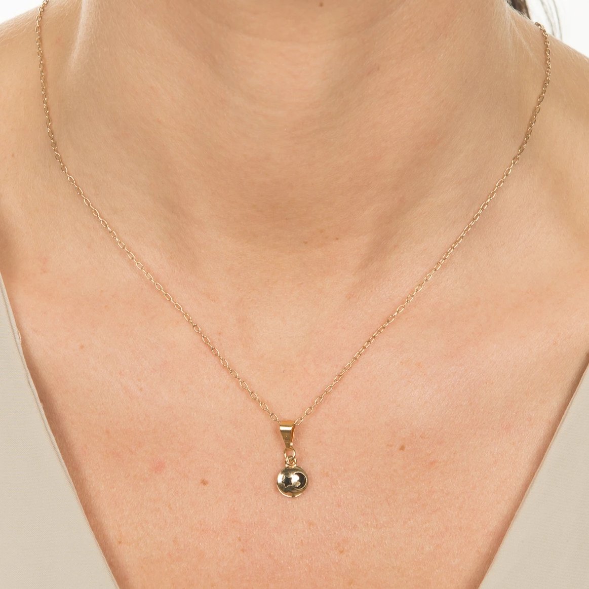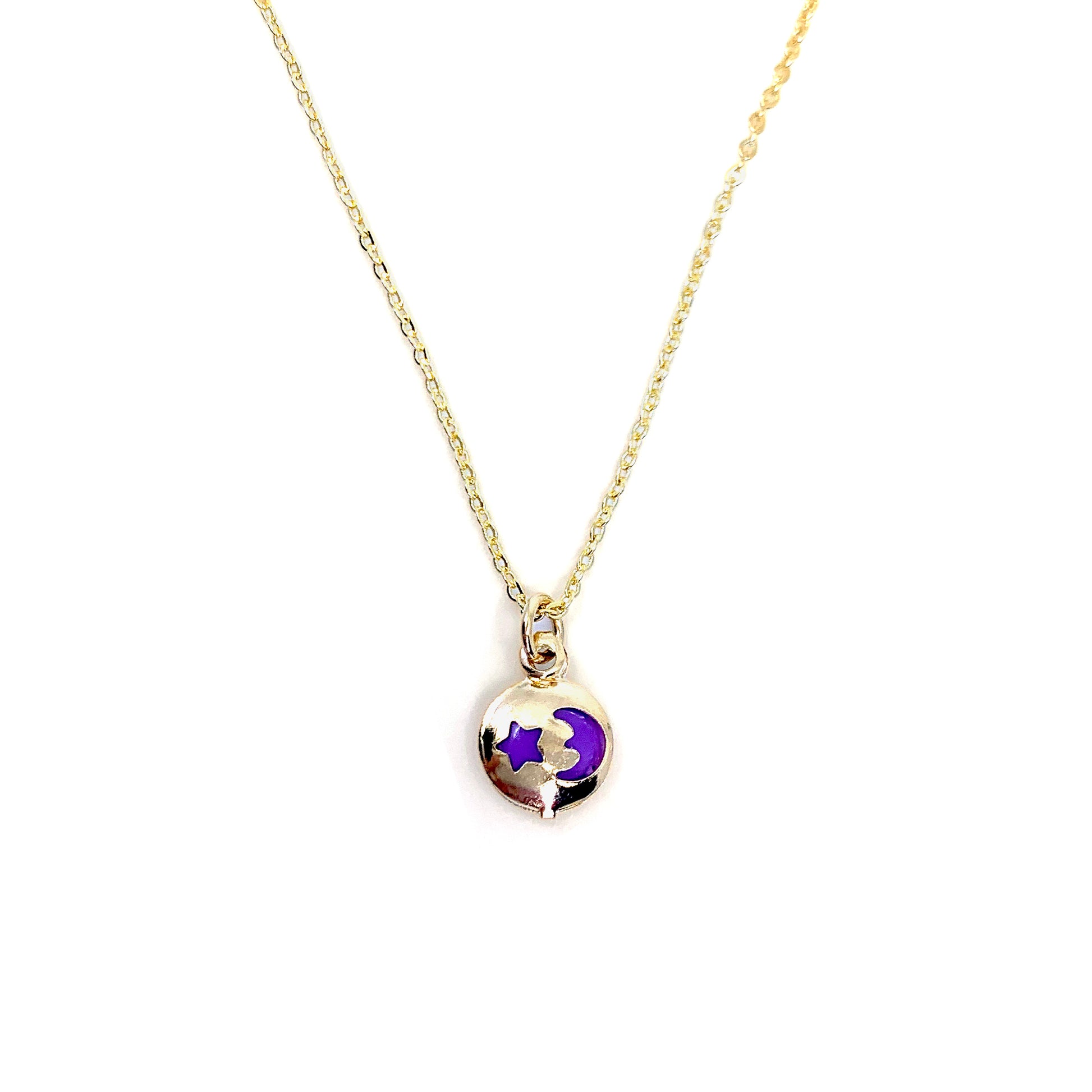 - Cosmically inspired moon and star necklace with gold chain